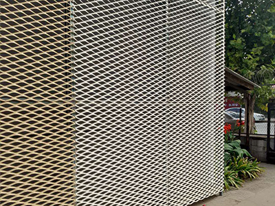 幕墻鋁板網(wǎng)運(yùn)用廣泛,具有普遍性,可以做成各種凹凸造型,構(gòu)成曲線的手法,顏色的多樣性帶給環(huán)境鮮明的色彩給人以賞心悅目的建筑藝術(shù)效果。為現(xiàn)代化城市面貌增添了無(wú)窮魅力。